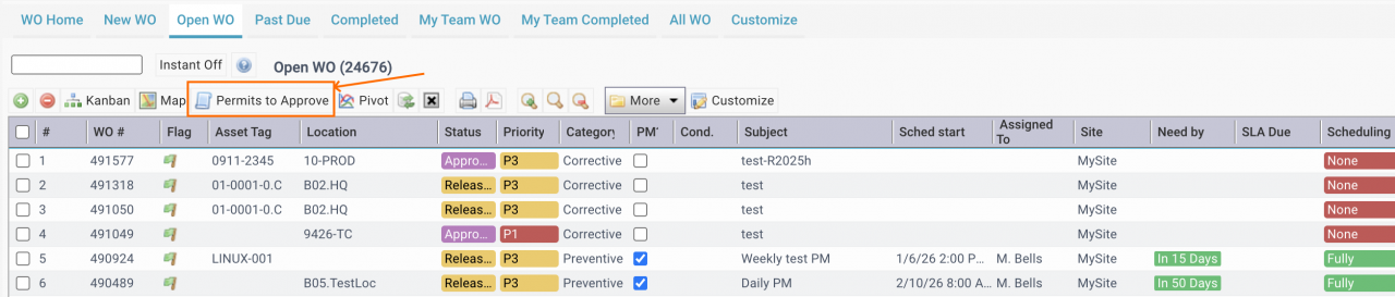 A new menu to show permits waiting for approval is available from Open WO list view. The new list of permits to approve allows safety personnel to review and approve permits efficiently.