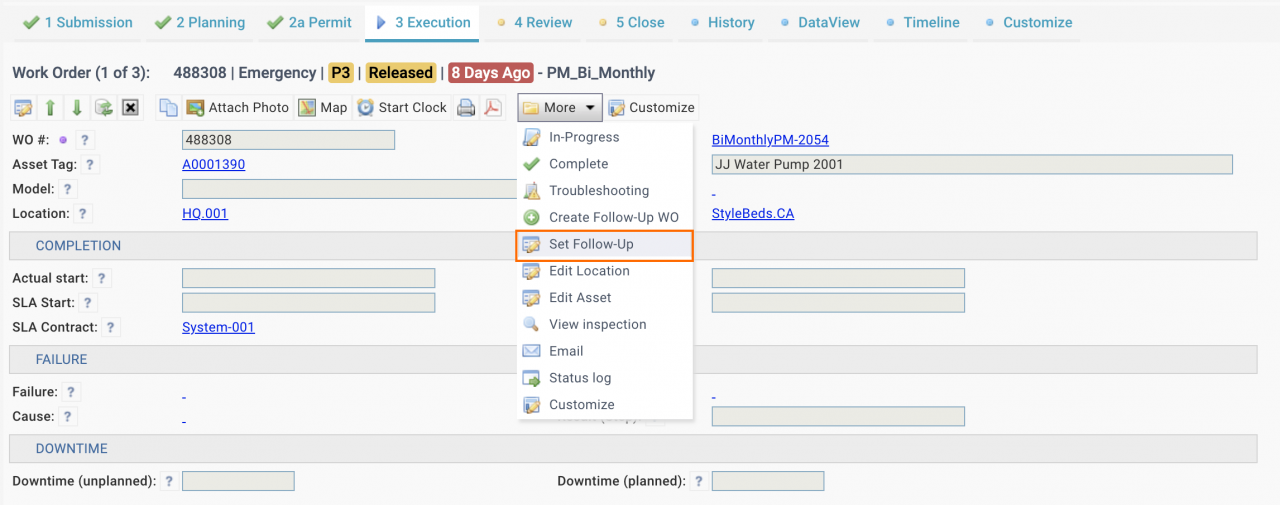 The "Follow-Up" tab at Work Order Home screen is the central place to manage work orders requiring follow-ups.
