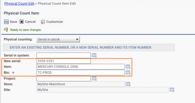 The transaction "Physical Count/Move (Quick)" (at Inventory | Transactions, or Barcode) does not work all the time for serialized parts. It will be addressed in the coming release of Calem R2026b (April 2026).